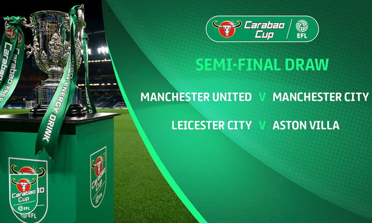 ผลการจับสลากคาราบาว คัพ 2019/20 รอบรองชนะเลิศ แมนเชสเตอร์ ยูไนเต็ด พบ แมนเชสเตอร์ ซิตี้ เลสเตอร์ ซิตี้ พบ แอสตัน วิลล่า *ทีมที่ชื่ออยู่ด้านหน้าจะเป็นเจ้าบ้านก่อน